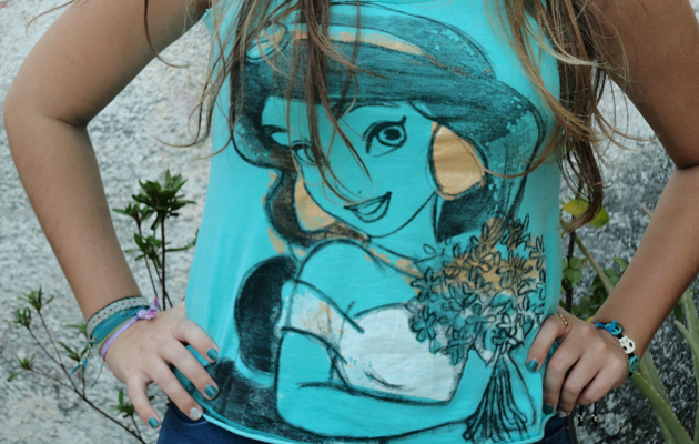 Eu amo a Jasmine, tô com invejinha da sua blusa! HAHAHA Linda, e eu amei o look! (Acho que é azul e não verde, hehehe)