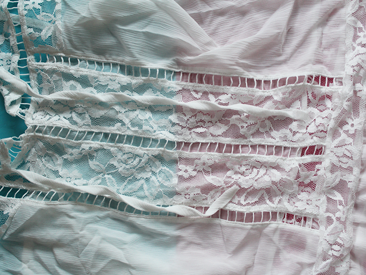 Ela é de alcinha, levinha e de rendinha. Pedi no tamanho L (que é o G de lá), porque sei que as roupas da China costumam ter uma costura menor. O tamanho G de lá é o M daqui. Enfim, já penso em usar ela com um sutiã de renda preto que eu tenho pra dar um contraste.
